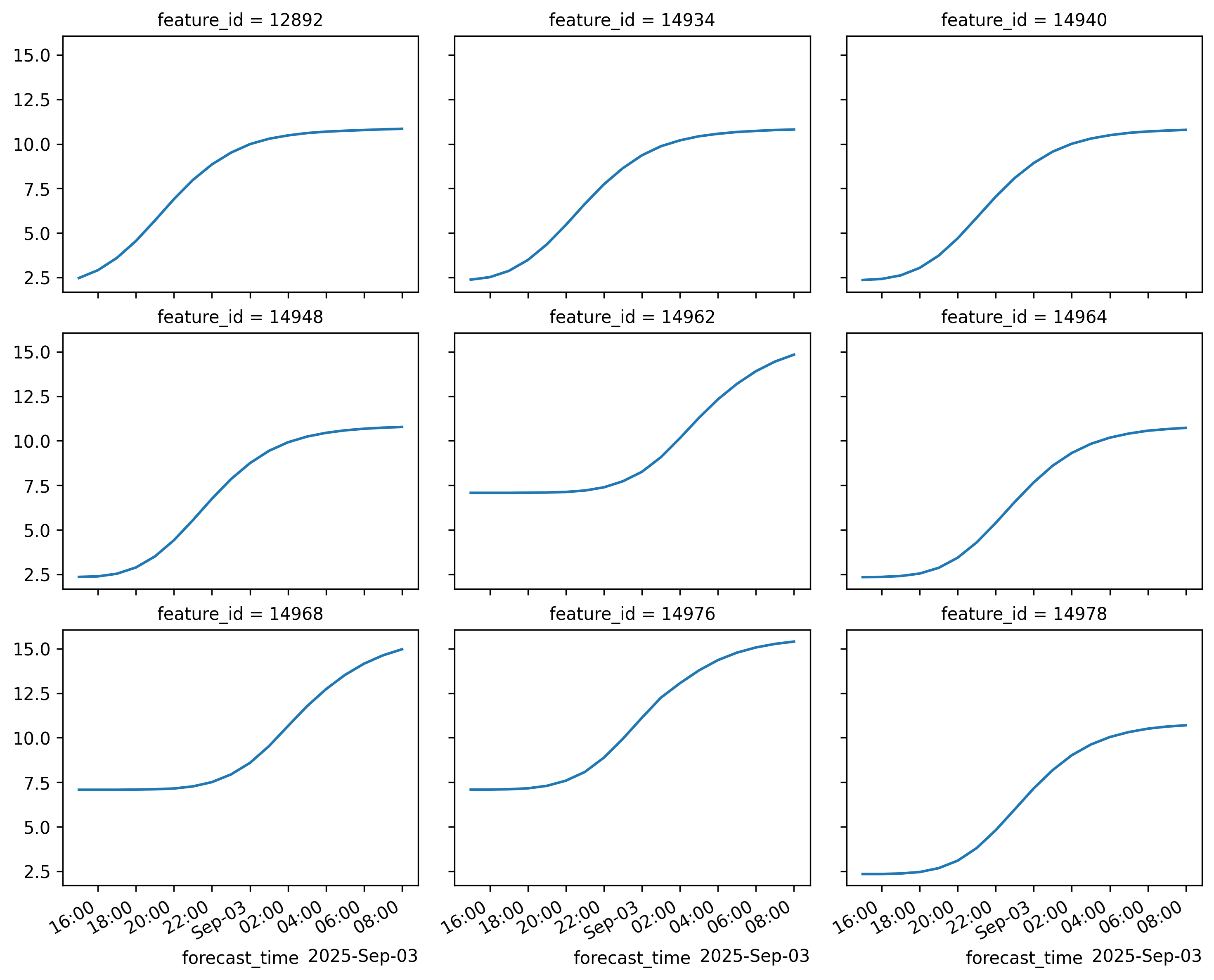 #> Dimensions: (init_time: 1, forecast_time: 3, feature_id: 10)